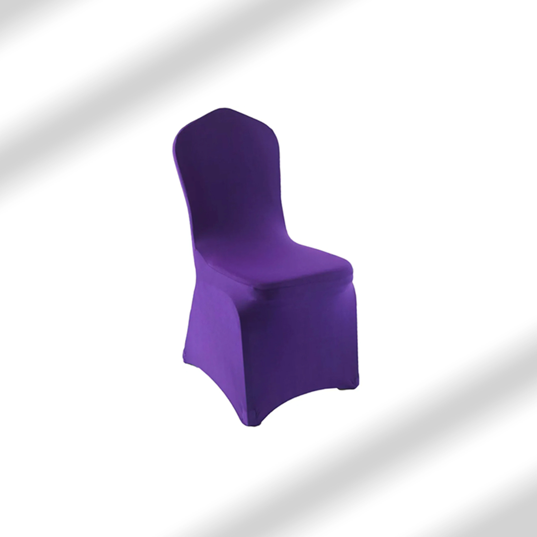 Add a royal touch to your event with our deep purple chair covers. Designed with premium stretch fabric, perfect for weddings, corporate events, and banquets.