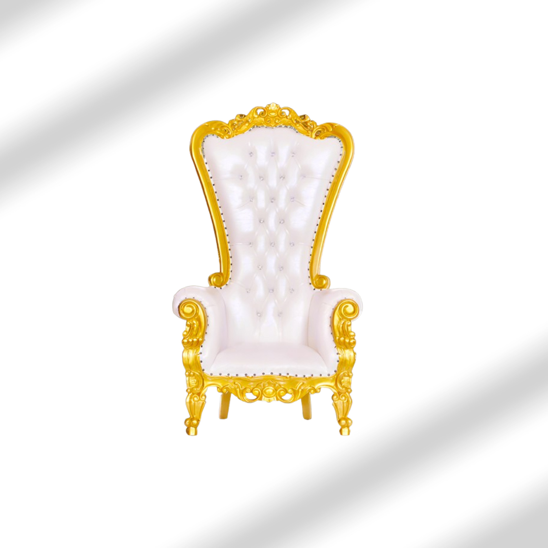 Experience timeless elegance with our luxurious white throne chair, perfect for weddings, baby showers, and royal-themed events. Crafted with gold detailing and plush white upholstery, this chair adds sophistication to any setting.